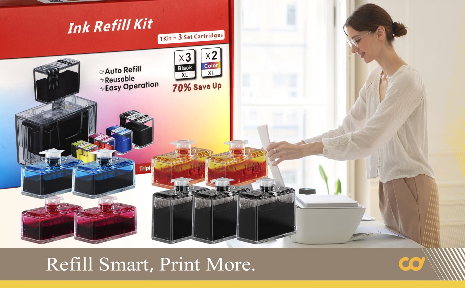 - High-Yield Printing: Each black ink refill provides up to 550×3 pages, and each tri-color ink refill delivers up to 450×2 pages. Together, this 9-piece refill kit produces up to 2,500 pages in total (based on 5% coverage on A4 paper)